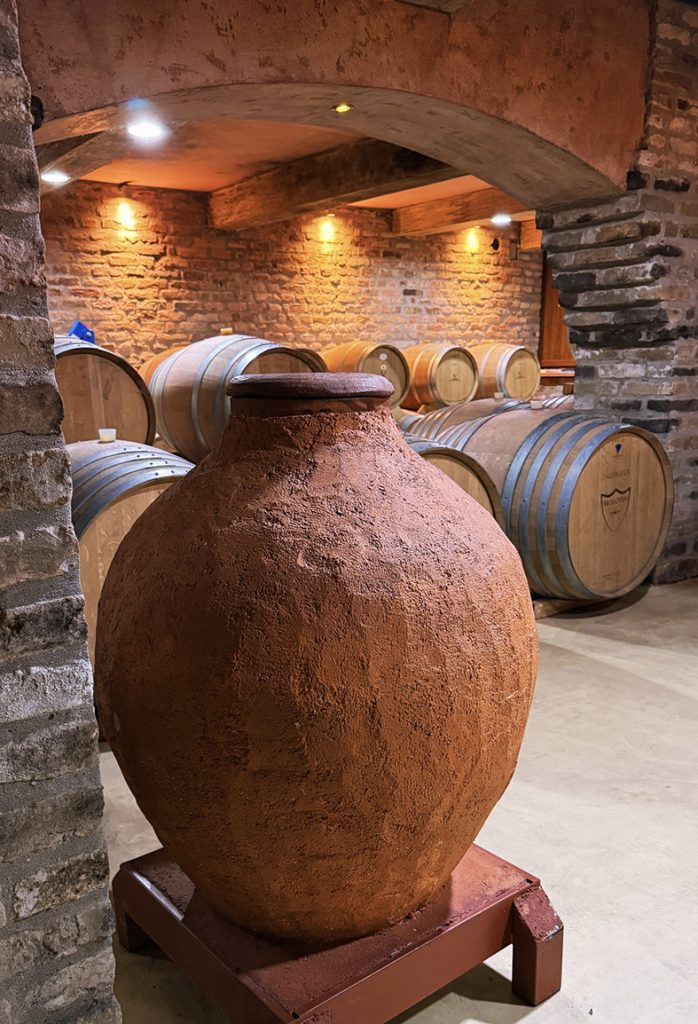 – Amfore nam služe za proizvodnju specifičnih vina oranž boje, poput konjaka – kaže Miroslav Kovačević. – To su dugomacerirana vina, koja u našim amforama borave sedam meseci. Postoje ljudi koji vole takav stil vina. Posebna je to publika koja se navikla na oranž vina. Ona uđu pod kožu i teško je piti obična kad se navikneš na ta specifična. Crvena vina se maceriraju i fermentišu do 20 dana, a ova sedam meseci budu u kontaktu sa pokožicom. Glina vinima daje mineralnost. Mi u većini slučajeva u amforama imamo grašac, koji se odlično ponaša u njima. To je vino koje se oseti malo i na beli biber. Vina iz amfora nemaju toliko jake tanine bez obzira što odležavaju u njima sedam meseci.Oni nisu toliko napadni, više su elegantni. U suštini u amforama se primenjuje tehnologija za crvena vina pri proizvodnji vina od belog grožđa. Kada biste ih sipali u tamnu čašu, mirisali i popili, stekli biste utisak da pijete crvena vina, jer imaju buke i ukus crvenih.