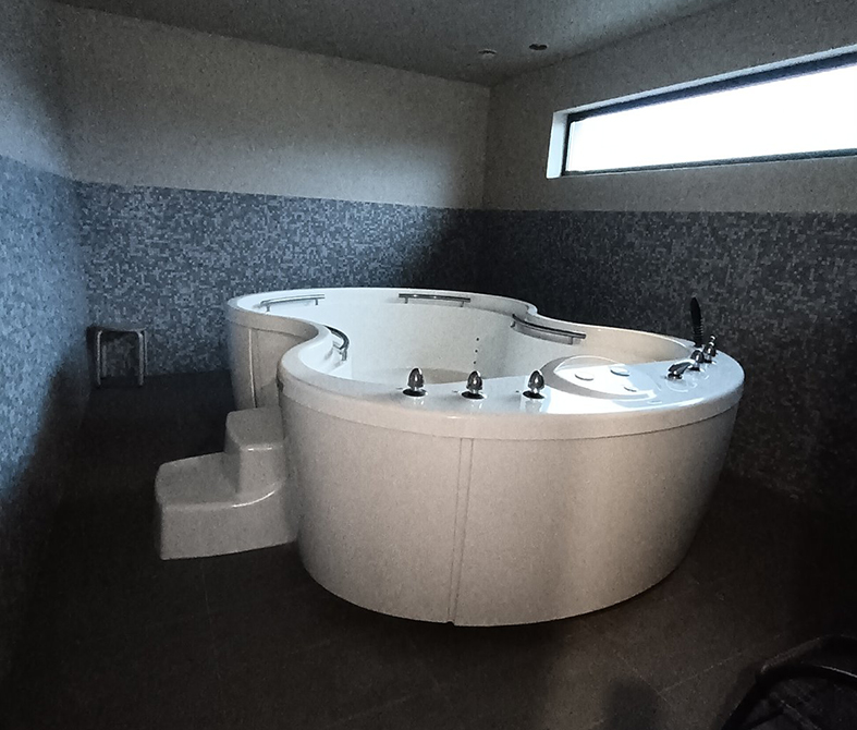 – Imamo i blato upakovano u vidu krema. Koristio sam ga za neke probleme na licu – kaže naš domaćin, dok se tiskamo oko njega da vidimo i slikamo, da osetimo miris. Nismo stigli sve da uslikamo, a već smo kroz hodnik došli do ulaska u bazen zažalivši što nemamo kupaće kostime. Usput sam uspela da bacim pogled i na kade za terapiju i džakuzi za četvoro. Sve po standardima jedne banje. Pored bazena smo izašli napolje, i našli se u prostranom dvorištu, lepo uređenom, sa česmom na kojoj se možete napiti banjske vode, naročito oni kojima ne smeta miris i ukus pokvarenih jaja, tj sumpora.