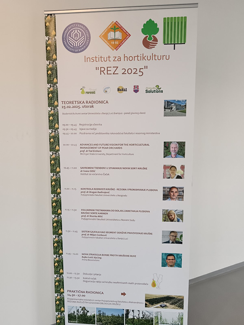 Na Poljoprivrednom fakultetu u Banja Luci održana je radionica REZ 2025. Tema je bila kruška, a u dva dana trajanja radionice, teoretski deo u organizaciji Instituta za hortikulturu održan je u Studentskom centru, dok je praktični deo rezidbe uz rezidbu kruške, jabuke i šljive prikazan na Eksperimentalno edukativnom centru Poljoprivrednog fakulteta u Aleksandrovcu.