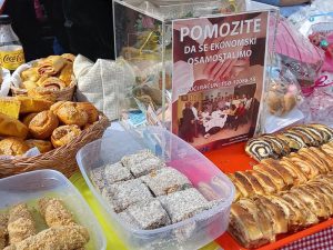 Na štandovima je bilo obilje kolača, pita, ručno pravljenih lizalica, štrudli, ali i domaćih palačinki, koje su zamenile ruske maslenice, koje se tradicionalni prave za njihov praznik.