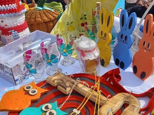 Tako su se na tezgama našli ručno rađeni sapuni, šivene kecelje, oslikane tikve, igračke, heklana i vezena odeća, „tegle sreće“ sa ispisanim porukama. Ovi proizvodi pomažu članovima udruženja da provedu kvalitetno vreme, ali i da zarade malo novca.