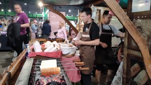 – Probajte domaće paštete, nećete se pokajati, ovakve niste do sada probali – poziva Marko Vasiljević, vadeći jednu po jednu teglicu i nudeći potencijalnim kupcima. Na suprotnoj strani, ko uspe da se probije, nailazi se na sušeni paradajz u maslinovom ulju, kao i sečeni sušeni paradajz, i pesto od paradajza. Ne zna se šta je ukusnije i lepše pakovano. Tu odmah do njih, sušeno meso, slanina – ona mesnata dobro suva, kobasice, sapunjara isto dobro suva, taman čovek da spoji sve i dobro zamezi. Pored već pomenutih francuskih sireva, bila je tu i sada već među ljubiteljima noćnih bazara i domaćih proizvoda, omiljena Mira Gilić sa svojim „Butikom kačkavalja“.