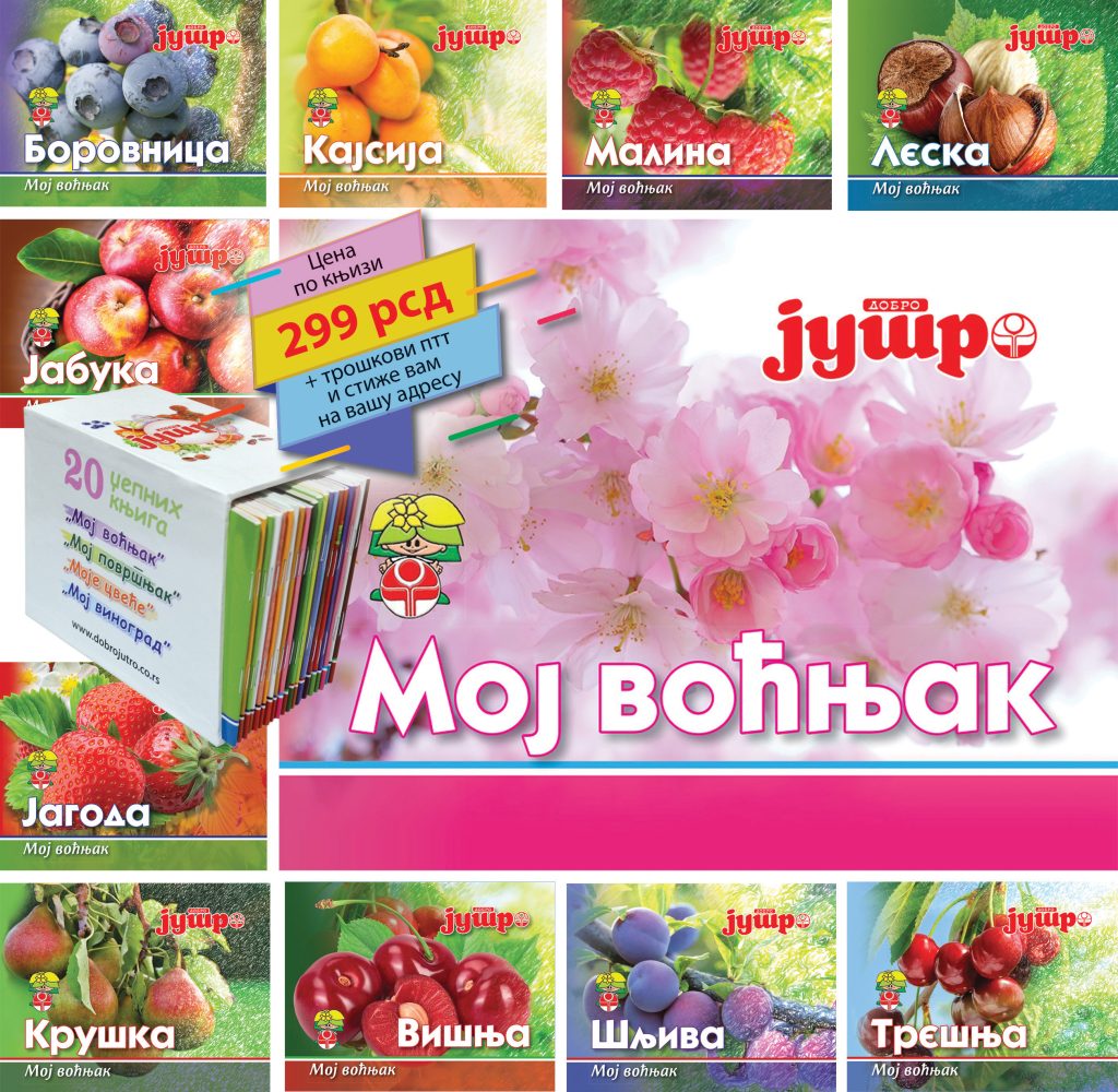 Pred vama je svih 20 džepnih knjiga iz serijala „Moj voćnjak“, „Moj povrtnjak“, „Moj vinograd“ i „Moje cveće“. Knjige u formatu 16x12cm u punom koloru na 64 strane, lake za korišćenje i uvek pri ruci.