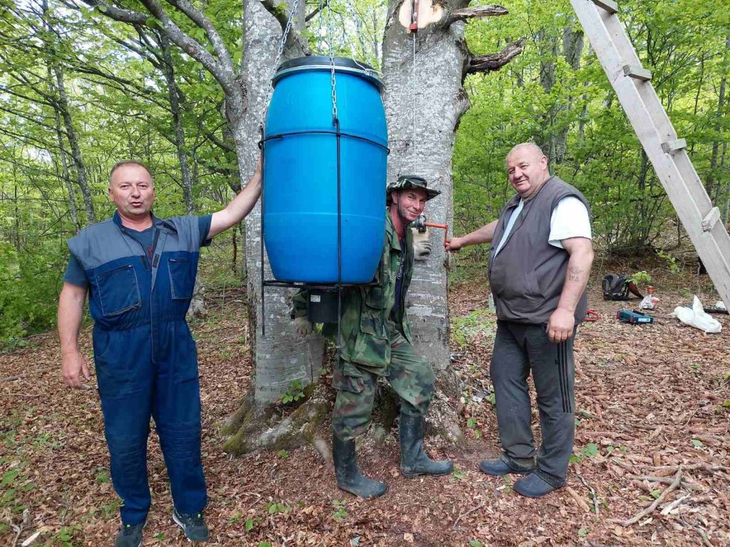 U Manguri iznad Nove Varoši medved je polomio automatsku hranilicu koju su u šumi postavili lovci i iz nje pojeo
