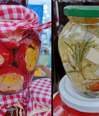 Čobanska tkana torba, u njoj kriška bele proje i starog sira