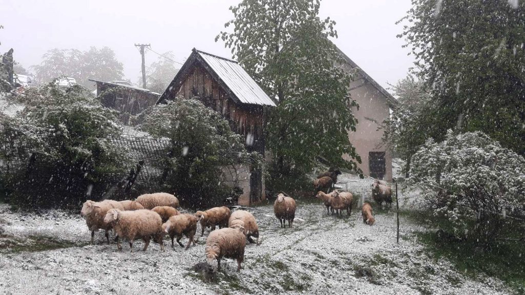 Petak je 16. maj, a na Murtenici kod Nove Varoši od ranog jutra pada sneg kao usred zime. Provejava i