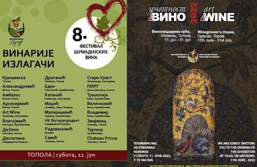 Uokrilju Kraljeve vinarije u Topoli, 11. juna sa početkom u 16 časova održaće se osmi Festival šumadijskih vina. Ukupno 24