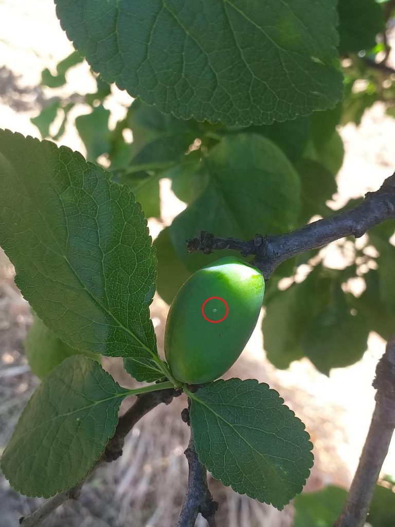 Na području Novog Sada zasadi šljive se nalaze u fazi drugo opadanje plodova (BBCH 73). Vizuelnim pregledom plodova registrovano je