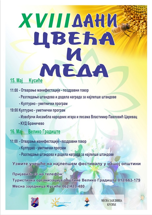 U Velikom Gradištu i obližnjem Kusiću 15. i 16. maja okupiće se ljubitelji cveća i pčelarskih proizvoda na 18. Danima