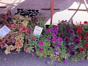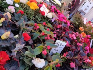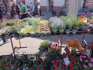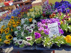 Veliki broj rasada raznobojnog cveća je bilo izloženo na jednom delu pijace i nikoga definitivno nije ostavljalo ravnodušnim. Šarenilo ruža, kala, zumbula, narcisa, ljubičica, poljskog cveća, pelargonija, maćuhica, fukcija, zmajevog krila, ukrasne koprive…