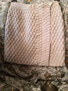 -Uh, ko bi se setio. Mislim da je to bio najjednostavniji tamno zeleni džemper koji sam sebi isplela. Bilo je to samo prave petlje i najlakši motiv – s godinama kako je učila radila je i sve komplikovanije motive.