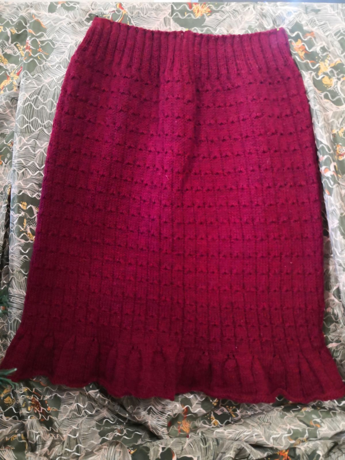 -Uh, ko bi se setio. Mislim da je to bio najjednostavniji tamno zeleni džemper koji sam sebi isplela. Bilo je to samo prave petlje i najlakši motiv – s godinama kako je učila radila je i sve komplikovanije motive.