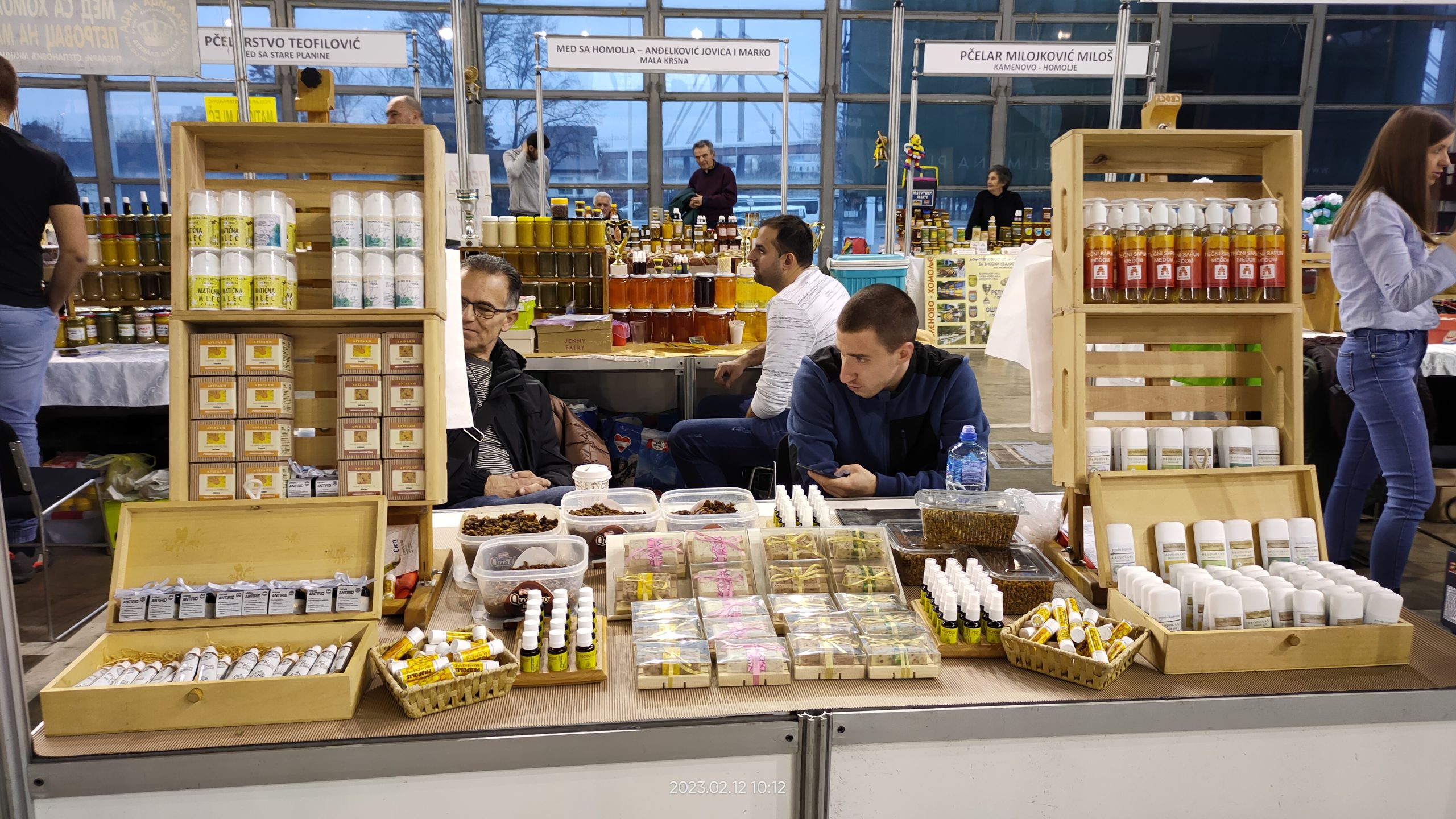 U prvom delu hale pčelari su izlagali med i proizvode od meda. Bilo ih je iz svih krajeva Srbije, a bilo je i gostiju iz Hercegovine iz Trebinja. Cene, za razliku od drugih proizvoda, nisu podivljale, te se med mogao naći od 1.000 – 1.800 dinara, koliko je trebalo izdvojiti za hercegovački vresak. Pčelari su svesni da je poskupljenje teško izvodljivo, tako da je polen u ravni s medom, iako bi morao biti bar tri puta skuplji.