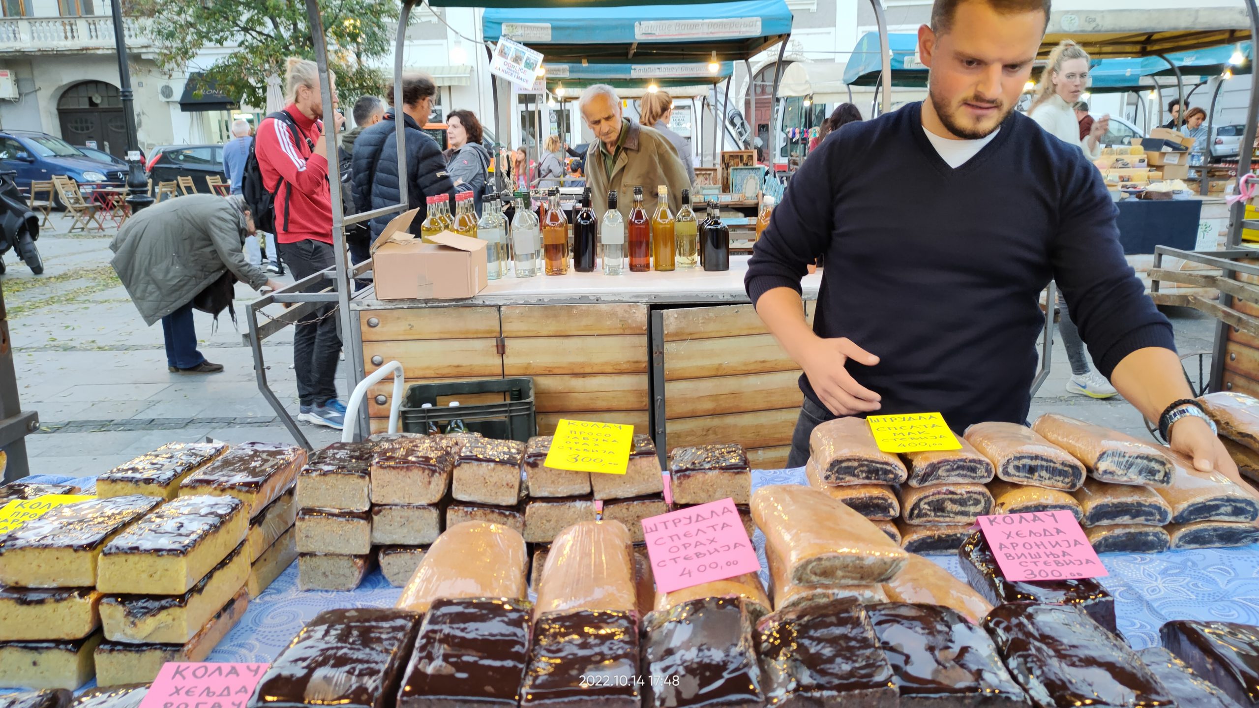 – Rogač je kod nas pomalo zaboravljen, ali evo mi ga koristimo u našim kolačima bez šećera. Kupci su uglavnom zadovoljni – rekao je proizvođač stavljajući robu na tezgu dok kupci lagano prilaze, privučeni niskim cenama i zanimljivim kombinacijama namirnica. Pored njega već je postavljen štand sa kozmetikom, muzika lagano pojačava ritam, pravi provod tek počinje.
