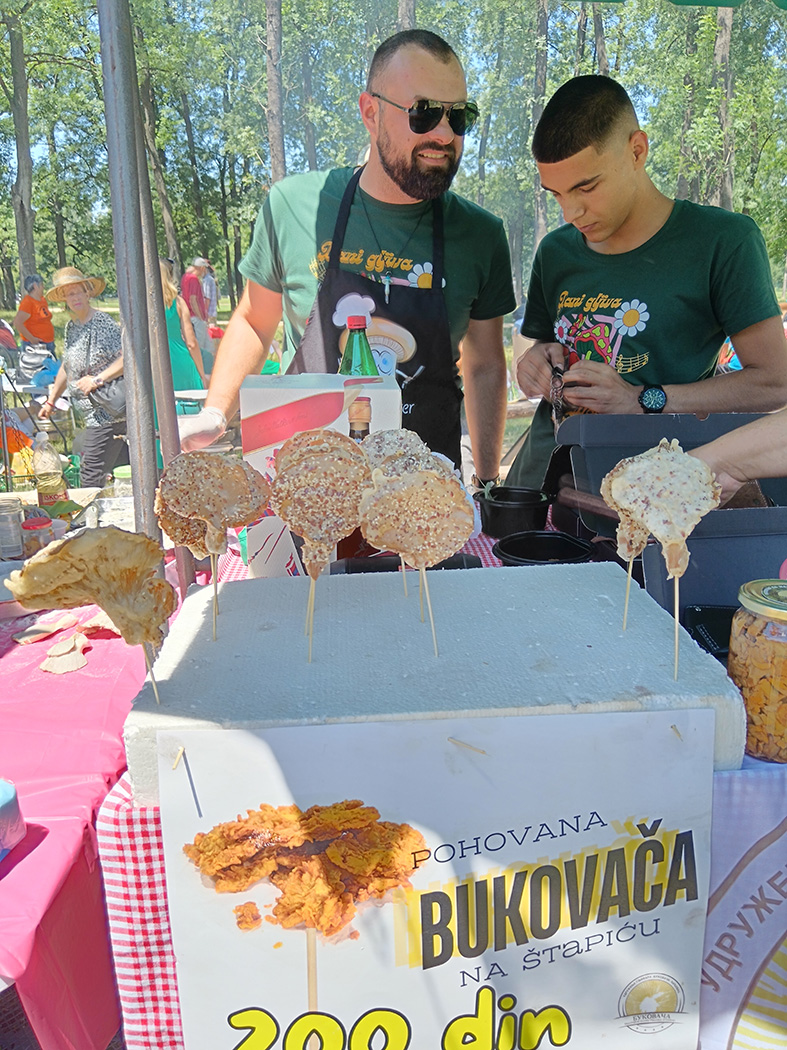 Gljive mogu biti i u slatkom obliku, kao slatko. I ništa se tu ne razlikuje u pravljenju od bilo kog drugog slatkog od voća – pričaju žene sa štandova, zadužene za ove divne ukuse. Nešto malo dalje od njih, udubljeni u svoj posao, za kotlićima uglavnom muškarci. Na talandari u dubokoj masti crvči vrganj, samo dva – tri puta okrenut i gotov.