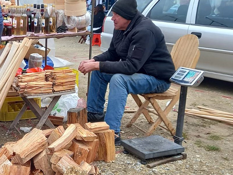 Srpski jezik mu nije jača strana, ali je uspevao potencijalnim mušterijama da objasni da su predmeti izrađeni od tikovine. Svoju robu cenio je 20 evra, a Šumadincima je bio zanimljivo da isprobaju kako se rasklapa i sklapa korpa.