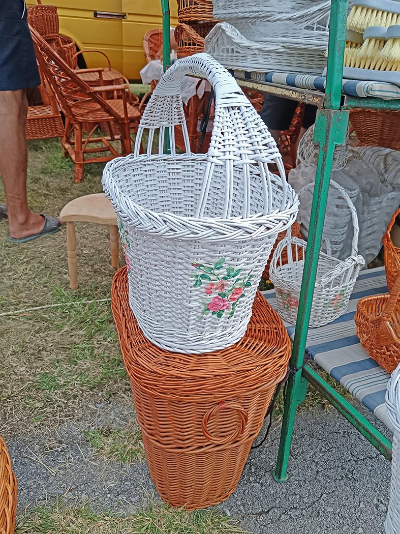– Sepeti se dobro prodaju, kupuju ljudi da drže drva, da se nosi seno ili paprika, neki da imaju kao retro primerak – ostavljam ga da radi, jer je oko tezge već poveća gužva. Navalile domaćice na oklagije, kao da će baš po ovoj vrućini da mese.