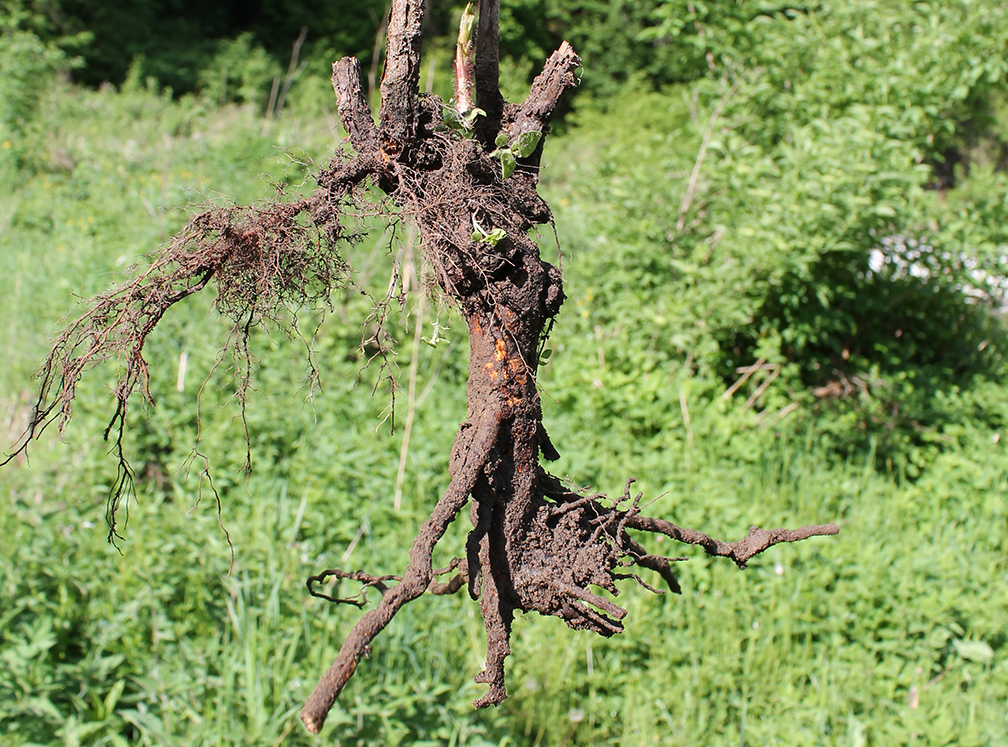 Nadzemni prirasti, nastali iz adventivnih pupoljaka na patrljku, nemaju sopstveni korenov sistem, zbog čega celokupni protok vode i mineralnih materija obavljaju preko starog korena izdanka koji je nepažljivo odstranjen.