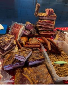 Kad prolaziš selom u kome su kobasice glavna atrakcija i primetiš štand sa natpisom „Domaći dalmatinski proizvodi“, naravno da ćeš zastati. Ko ne bi zaastao kad pored mirisa roštilja, pečenog vola i čvaraka, oseti miris maslinovog ulja i maslina. Gusto, devičansko, pravo jako i preukusno. A masline, što bi babe rekle „ko nacrtane“. Izbor sireva kao u nekom dobro opremljenom marketu, beli u krišci, beli tvrdi, beli lisnati, pa onda kačkavalj ementaler i kačkavalj od tri vrste mleka, koji nisam imala nameru da kupim, al’ se predomislih kad sam ga probala. I oni, već pomenuti čvarci. Ajd što prave šoder čvarke, nego me štrecnu kad videh da Dalmatinci prave i duvan čvarke – specijalitet moga kraja.