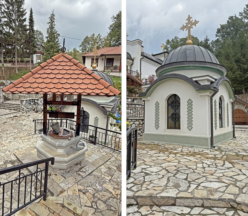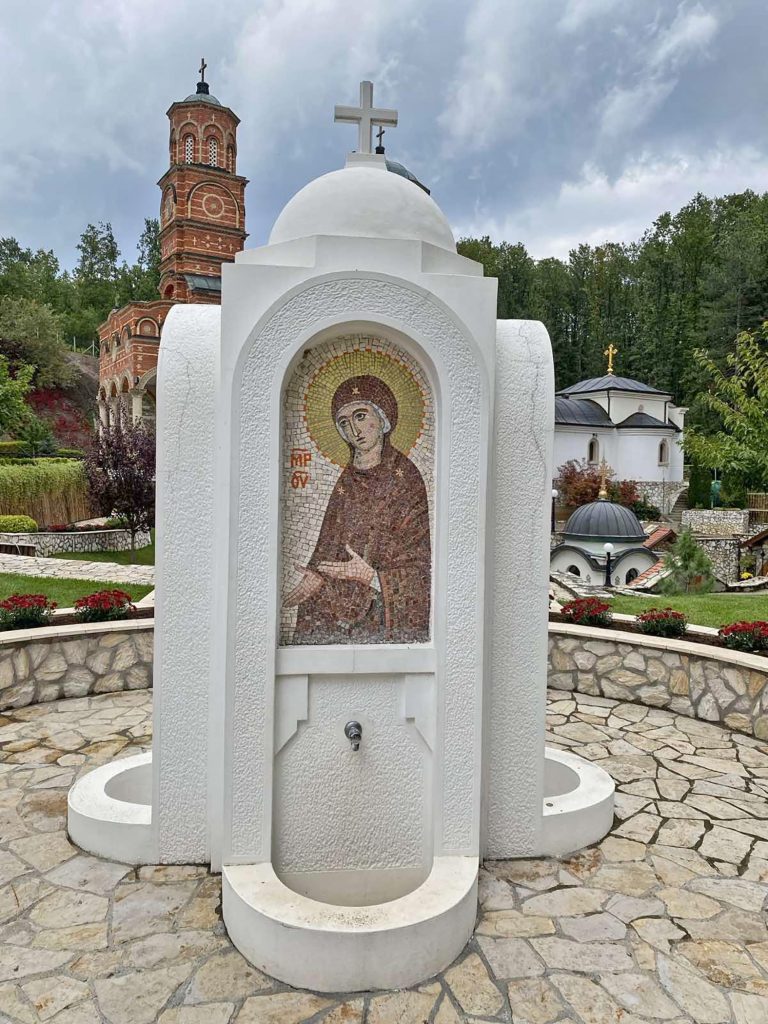 Ispred nas crkva, predivna građevina, okolo trava i cveće, malo niže niz stepenice bunar i sveti izvor, da se umijete i popijete vodu. Mir i tišina plene i donose mir u glavi i duši.