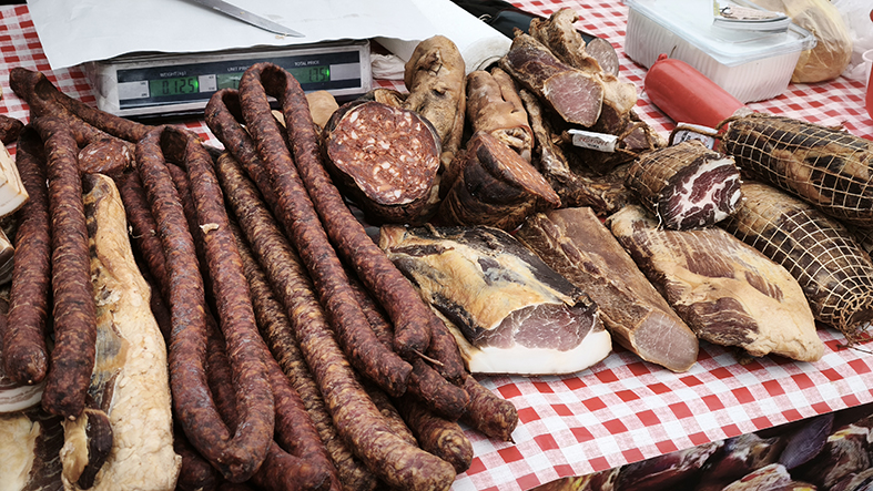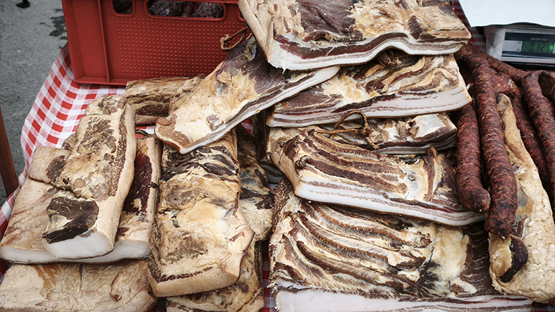 Kobasice, slanina, kulen, šunke i buđolice vise pred kupcima isto onako kako bi visile i u njihovoj sopstvenoj pušnici.