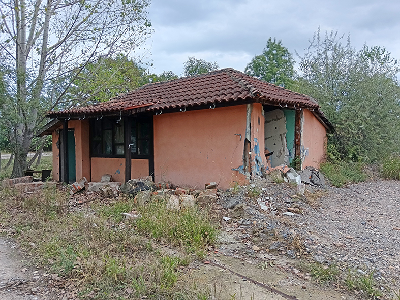 Krećemo lagano, pevajući i dalje, nekako nam lakše tako. Puštamo neke naše pesme. Uz put samo ruševine nekadašnjih života. Razvaljeni zidovi, ostaci kunjihskih delova, polomljen prozor al’ na njemu i dalje leprša zavesa, ona stara najlonska, što smo je iz Bugarske u švercu donosili, kućica za psa – zatvorena, lepa, vidi se da je nekada u njoj neki cuko uživao, tu je i zidana furuna, iza nje u odeljku za drva na čiviluku uredno okačena ostala radna odela, u dnu grtač pepela, kao da će se svakog časa neko vratiti. Nešto malo dalje garaža, na njoj razvaljena vrata i mnoštvo nekih nebitnih stvari, jedan džak kreča neotpkovan, ispred nje bunar zarastao u korov, a u travi, još zelenoj, crveni se šerpica. Crvena oslikana belim radama, sa ručkom, na nekoliko mesta zarđala i bušna, a na njoj natpis „uspomena iz banje GORNJA TREPČA“. I tu sam pukla. To je nečija uspomena ostala u travi, nečiji možda jedini odlazak u banju, možda i prva ljubav tamo doživljena. Gde su sad svi ti ljudi, kad se gasi se selo, nestaje…