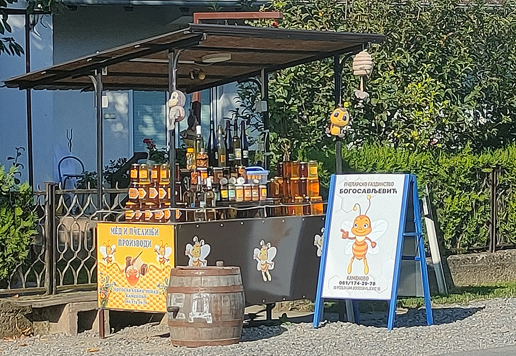 U Srbiji postoji put vina, a za one koji ne znaju postoji i put meda. Do najmedenijeg sela u našoj zemlji, stiže se trasom preko Salakovca, Malog i Velikog Crnića, Batuše, Kališta, Velikog sela, prolazeći pored gastarbajterskih kuća čuvanih nezaobilaznim sokolovima, lavovima, konjima od belog mermernog kamena, gde su roletne spuštene i dižu se jednom godišnje kad su odmori, gde starci žive čekajući mlade, gde je sve veće i bolje od komšijinog. To najmedenije selo, neobičnog imena Kamenovo, dočekalo nas je raširenih ruku, mada bolje je reći raširenih krila. Pčelinjih. Na samom ulazu je znak dobrodošlice, a u centru spomenik pčeli. Košnice na svakom koraku, ispred dvorišta do magistralnog puta načičkane jedne preko puta drugih, tezge sa proizvodima od meda. Svega ima, od polena, propolisa, perge, medenih kolača, medene rakije, fito terapeutskih proizvoda, pa do drvnih kašičica. A sve je počelo, po predanju, još u vreme Turaka, kada je selo harač plaćalo u medu.
