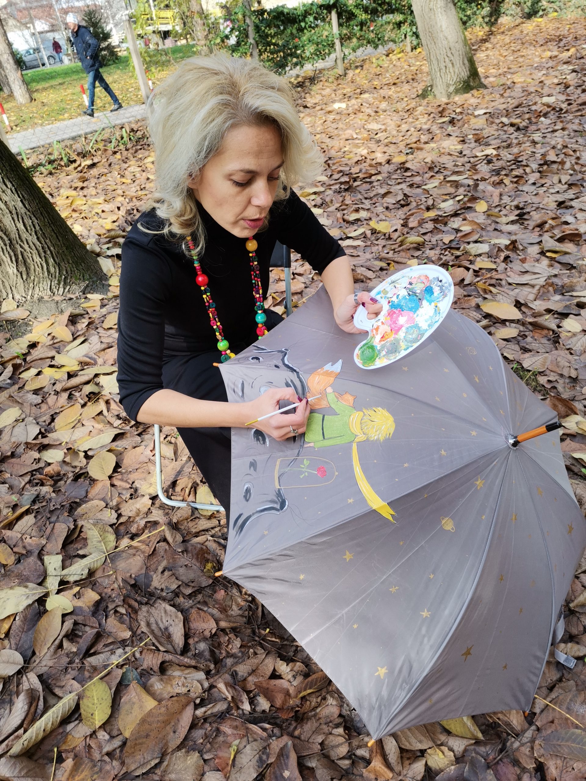 – Na žalost, nisu jeftine, pa nije lako ni započeti ovakav posao. U proseku samo jedna boja od 25ml je oko 400 dinara, a vi ih za rad morate imati najmanje deset. Moram priznati da sam dugo tražila one prave. Bilo je tu i razlivanja boja, upropašćenih radova, ali to je proces koji se mora proći. Svaki neuspeh je velika škola i vodi vas ka uspehu, ako ga prihvatite na pravi način. Sada sam našla prave boje za oslikavanje kišobrana i ne menjam ih. Srbija je u poslednje vreme dosta toga učinila dostupnim. Naravno da je potrebno dobro istražiti tržište i povezati se sa pravim ljudima. Materijali jesu dostupni, ali samo u ograničenom broju radnji, koje nekada nije lako pronaći. Najteže je bilo pronaći kvalitetne kišobrane, jer koja je poenta naslikati nešto što neće dugo trajati. Još uvek nisam našla kvalitetne dečje kišobrane (teško se nalaze jednobojni) i one koji staju u torbu – ako je i teško doći do kvalitetnog kišobrana nije teško odabrati motiv. Motiva je na pretek, mada i tu postoji neka granica da bi se očuvala prepoznatljivost.