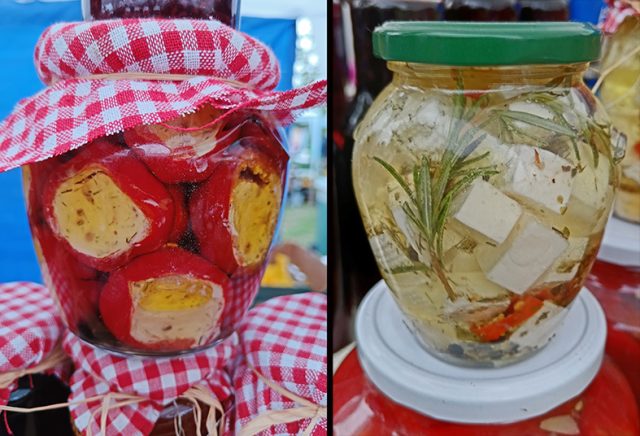– Zatvorene tegle stavimo u hladnu vodu i na šporet. Kad provre na šporetu ostavimo petnaest do dvadeset minuta na tihoj vatri. Izgasimo šporet i ostavimo u toj vodi da se ohlade. Tako pripremljene mogu da stoje dugo, a kada se načne tegla onda mora stajati u frižideru jer nema nikakvih konzervanasa – rekla je domaćica iz gazdinstva Đukanović iz Miševa, koja osim papričica punjenih sirom prodaje i teglice punjene kozjim sirom i maslinovim uljem, sa dodatkom biljnih začina.