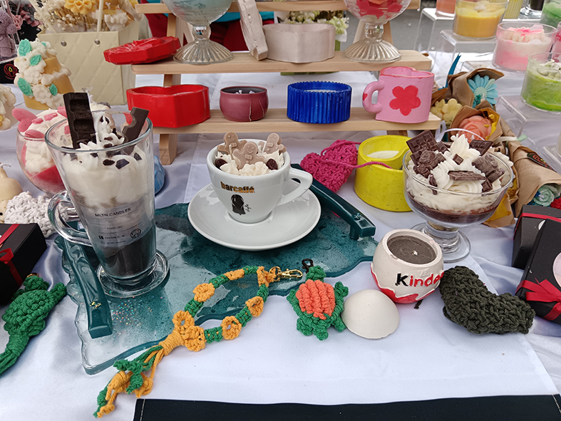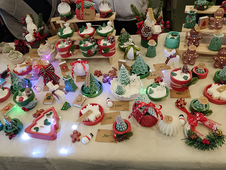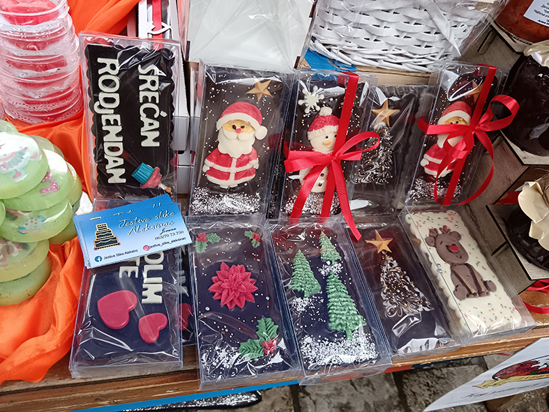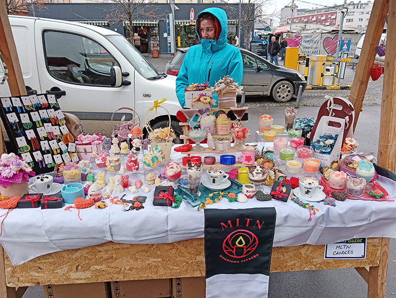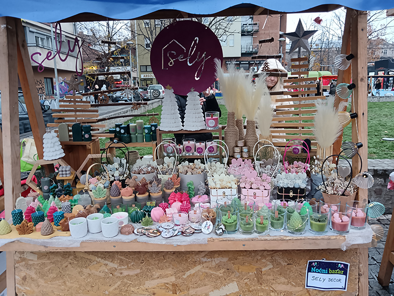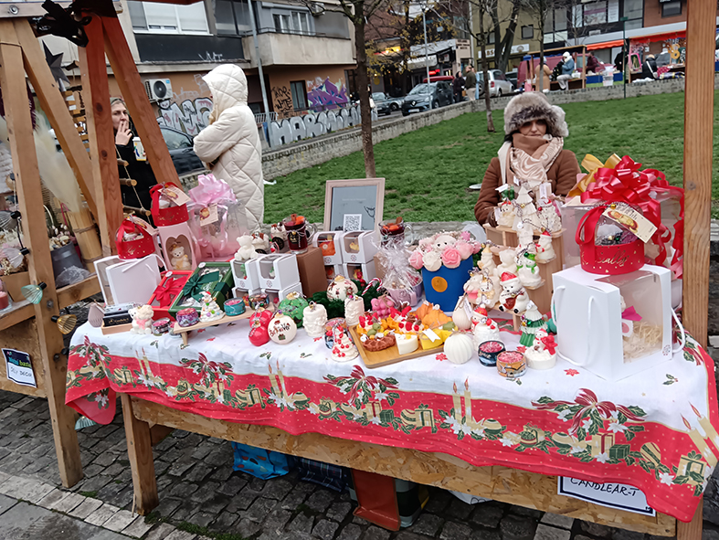 -Imamo ukrasne sveće, igračke rađene u 3D štampi, heklane ukrase za jelku, nakit od porcelana i keramike, kao i ručno oslikane i crtane čestitke. Izlagači se menjaju svake subote. Posebnu pažnju privlače i sveće rađene u obliku novogodišnjih ukrasa.