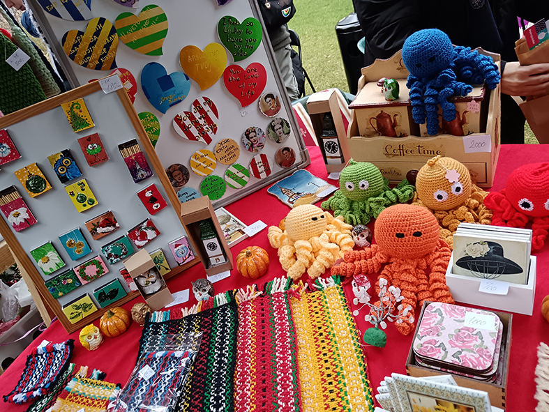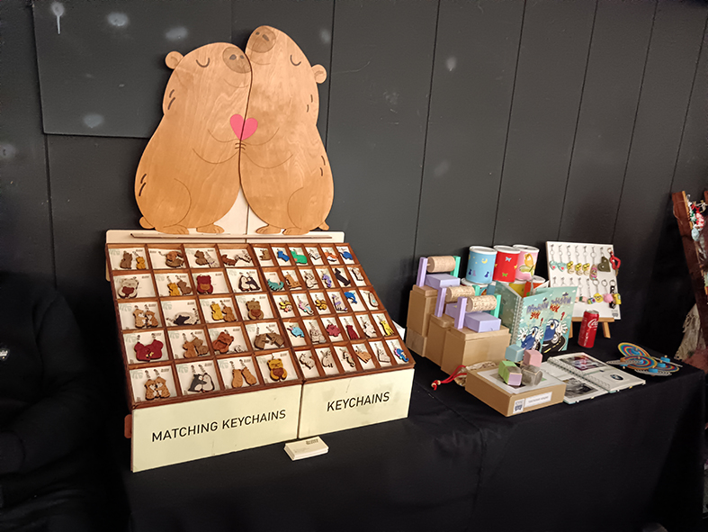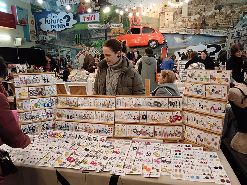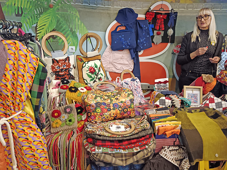 Velika sala rezervisana je za handmade izlagače, čak 29 stolova sa raznovrsnim rukotvorinama. Izlagači dolaze iz različitih krajeva, uključujući Niš i Skoplje, što bazaru daje regionalni karakter. Na bini se nalaze i štandovi sa second hand garderobom, koji dodatno promovišu ideju održivosti.