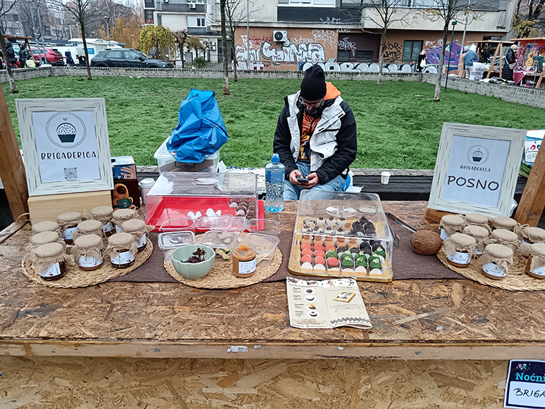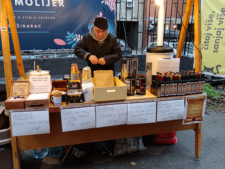 -Jedan deo lokala je posvećen bazaru. Napravili smo mali konkurs i odabrali 15 izlagača koji prave svoje proizvode. Ideja je bila da ljudi, osim što mogu da popiju kuvano vino ili kuvani džin i da pojedu nešto, imaju priliku i da kupe praznične poklone – ističe Ivana.