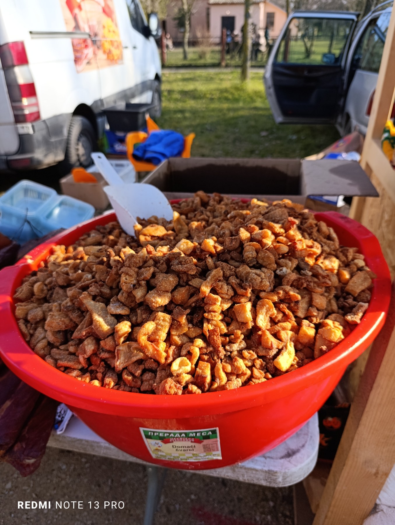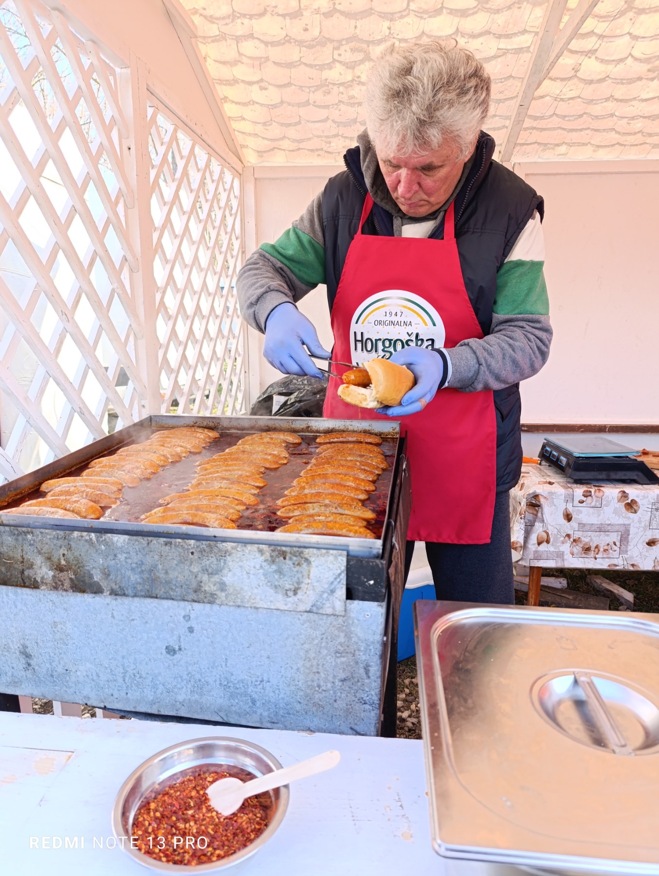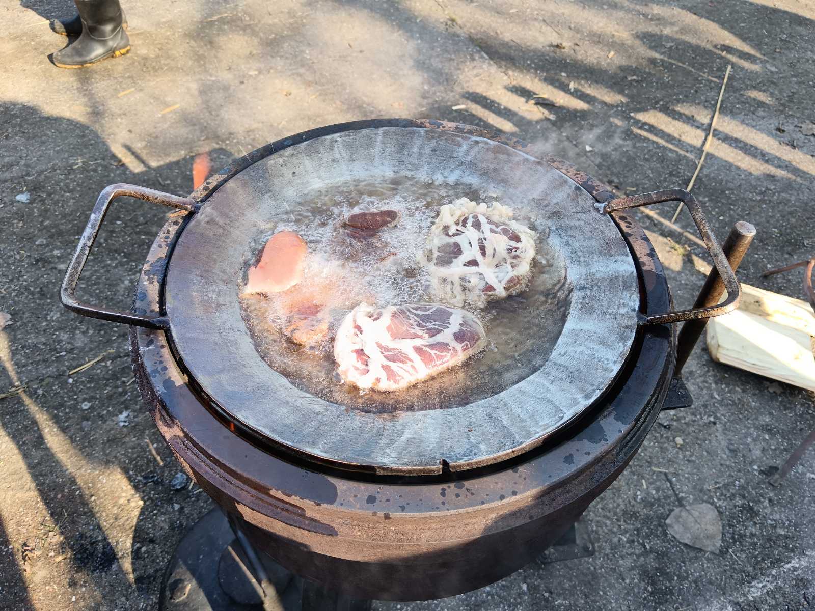 Na samom prilasku, preko puta belog šatora u kome se svake godine održava takmičenje u pravljenju kobasica, okreću vola na ražnju. Bar ono što je od njega ostalo. I nije mi jasno, ako smo mi došli oko jedan popodne, ko je do ta doba već uspeo da izede veći deo vola.