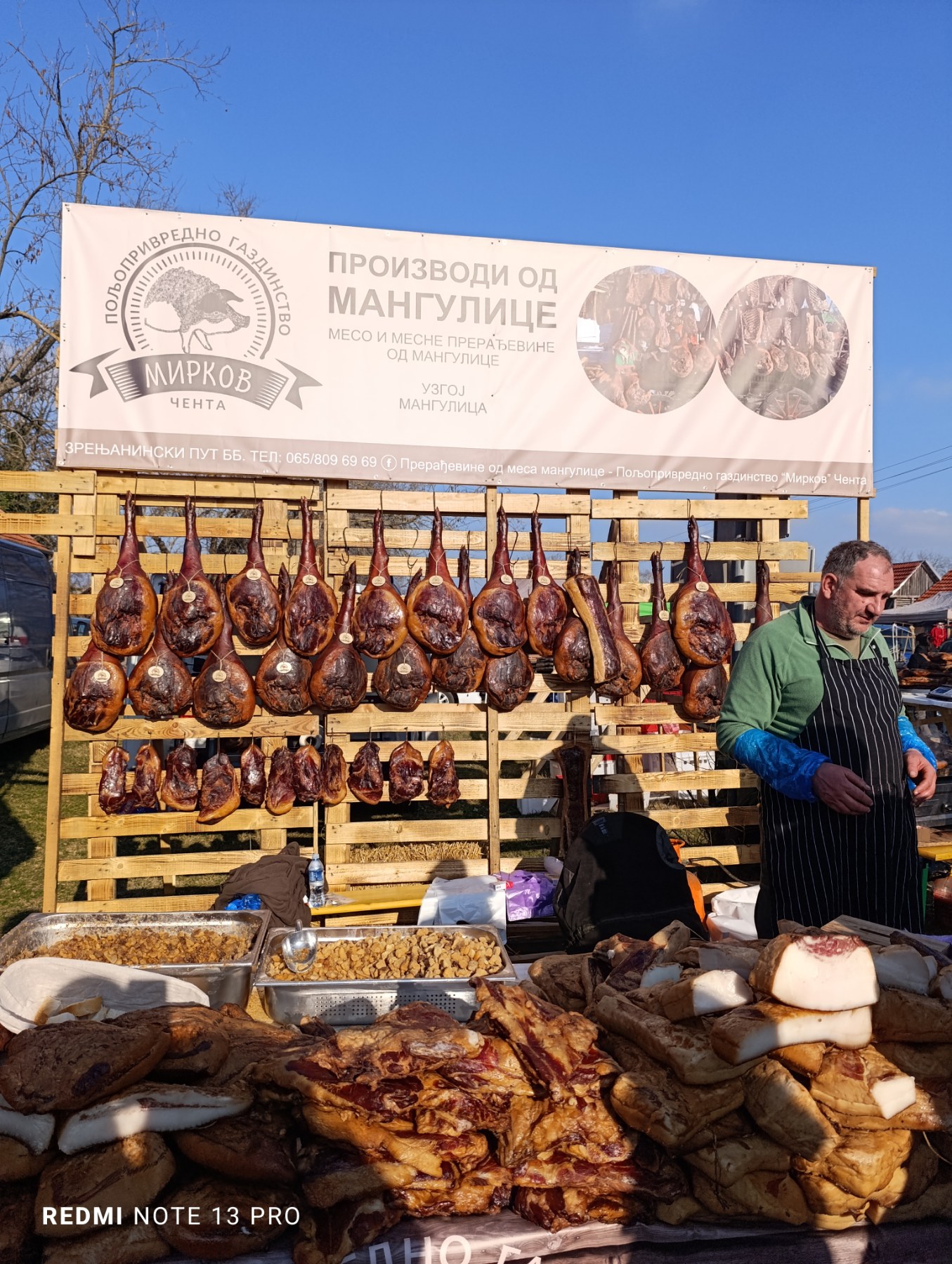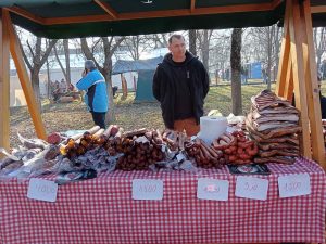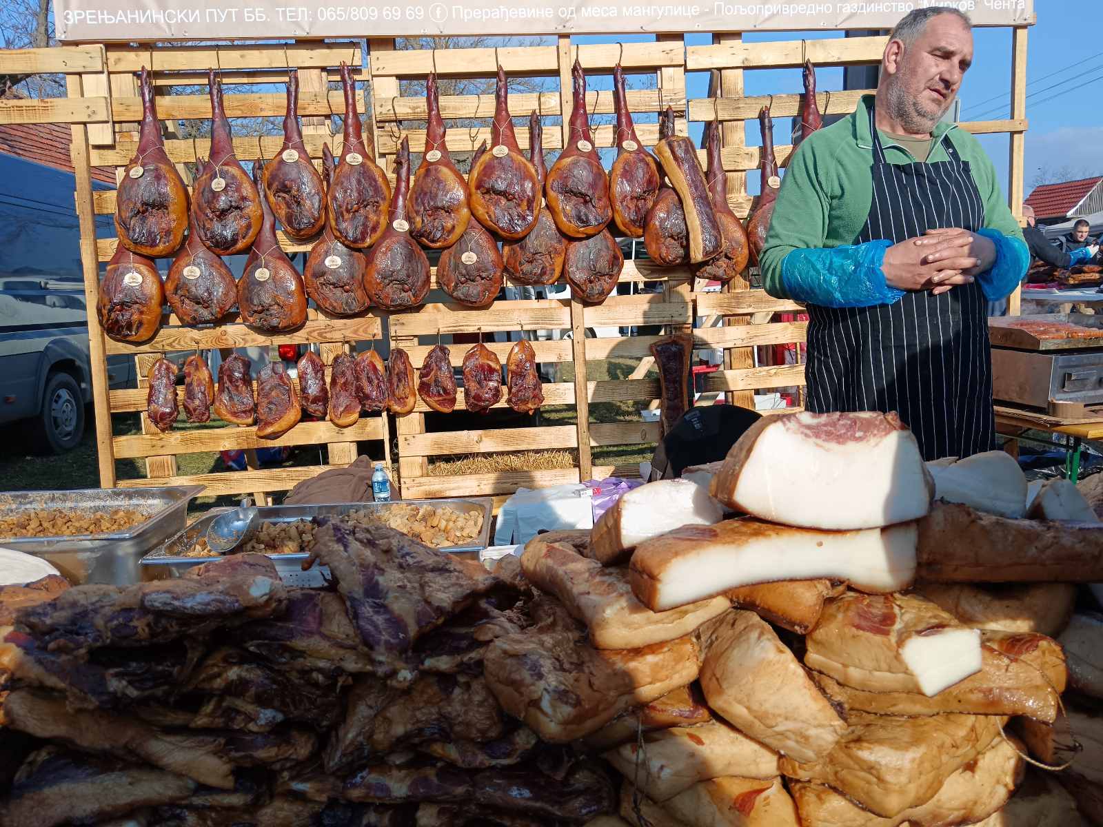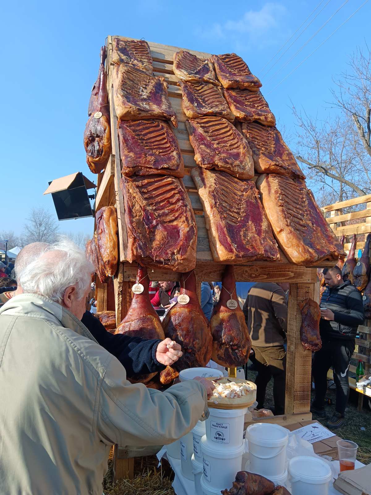 Pored kobasica, još se u kotliću puši jagnjeći gulaš, njega nismo marili da probamo iako je lepo izgledao. O ponudi raznih suhomesnatih đakonija ne treba ni pričati, svega je bilo, a cene niže nego prošle godine što smo zapamtili. I kobaje su bile jeftinije, od 300-500 dinara.