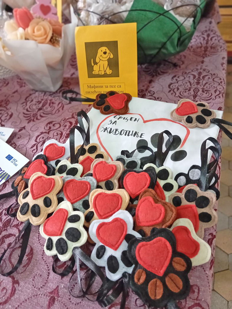 U sklopu događaja, u školskom holu organizovan je i humanitarni bazar. Prodavali su se sapunski buketi, ručno rađeni sapuni, keksići od bundeve i mafini od pileće džigerice za pse, kao i prirodna kozmetika i privesci koje su izradili učenici škole. Sav prihod namenjen je kupovini kućica, hranilica i pojilica za pse koji borave na školskoj ekonomiji. Projekat Briga o psu – više od šetnje realizuje neformalna grupa učenika i nastavnika škole pod nazivom Srcem za životinje, a podržan je od strane EU Resurs centra za civilno društvo. Ovaj događaj ne samo da je edukovao mlade, već je i pokrenuo važan dijalog o ulozi svakog pojedinca u očuvanju zdravlja i dobrobiti životinja, čineći jedan školski dan mnogo više od običnog časa.