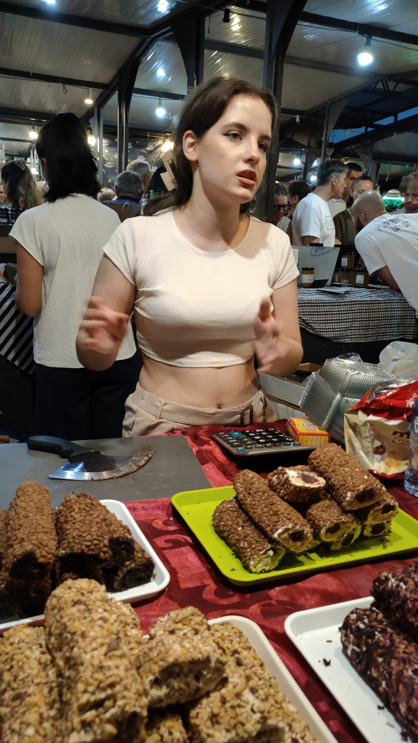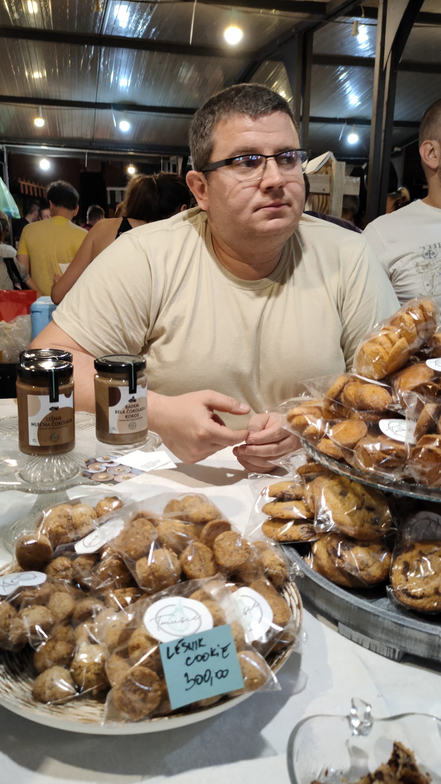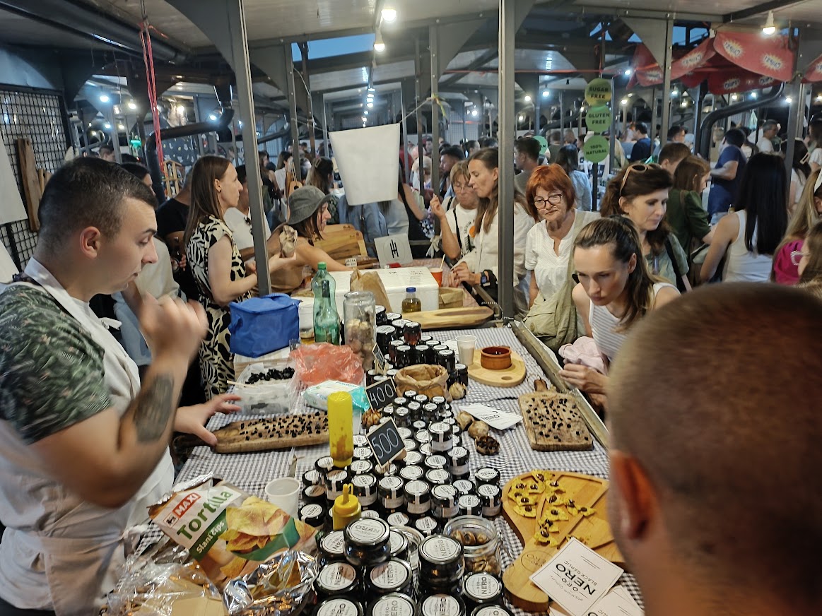 A na žurci nema čega nema. Odavno nam poznati proizvođači sira, sušenog paradajza, domaćih pašteta od šunke i čvaraka, razni matični sokovi, pivare ne možeš ih prebrojati, drpano meso kod Piroćanca za proverene gurmane, portugalski kolači, slatki voćni obroci, a nisu džemovi, bašte u staklenim bocama iz kojih ne izlaze duhovi, rakije i vina. Ustaljena, ali više nego odlična ponuda na ovakvom marketu.