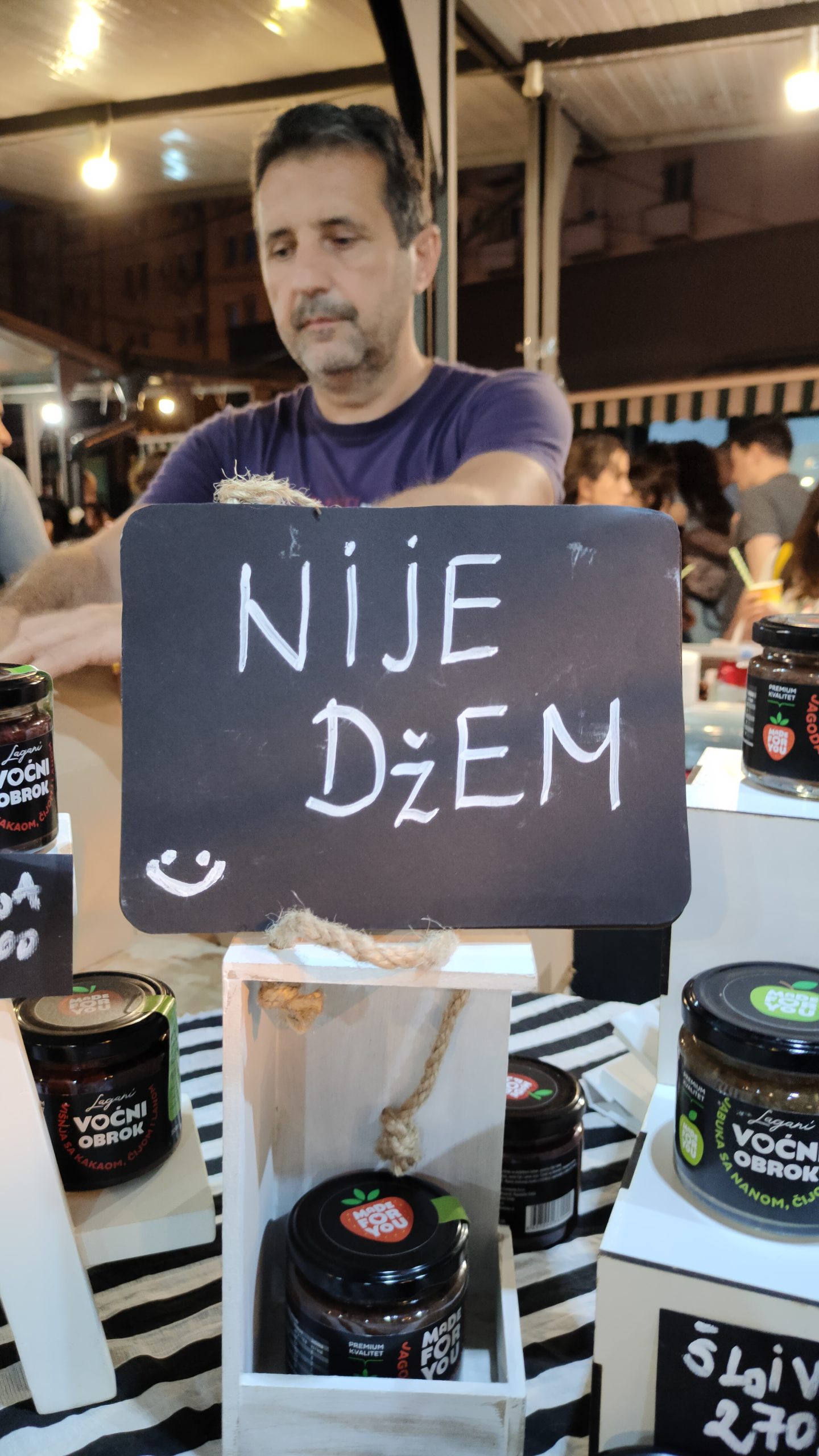 U donjim, možda i gornjim, kako s kog ulaza uđete ili na koji izađete, ne i manje zanimljivim redovima, jesu ručno rađene torbice, minđuše, lančići, ogrlice, majice, torbe za pijac, kozmetika i igračke za bebe. I svuda je gužva, baš svuda. Dok pokušavate da prođete što između načičkanog naroda, što između tezgi, saplićete se o domaće manje i veće kućne ljubimce koje su vlasnici poveli u provod, i sve uz osmeh, s voljom i lagano, izvinjavajući se jedni drugima. Vi što ste zapeli, a oni što ih čvrsto ne drže. Svima je lepo, niko se ne ljuti. Još jedan Noćni market opravdao je očekivanja i jedva čekamo sledeći.