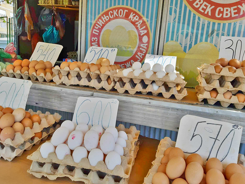 Domaćice ne propuštaju da kupe paradajz koji košta 150 dinara, crni luk i krompir koji staju 100 dinara, kupus i krastavac za koje moraju da izdvoje od 70 do 80 dinara za kilogram. Beli luk kupuju na komad jer je kilogram ovog povrća dostigao cenu od 500 dinara. Većina njih na komade kupuju i karfilol i patlidžan po 250 dinara/ kg. Toliko plaćaju i kutiju od deset jaja, domaćih koka koje trče po dvorištu, a ukoliko žele da kupe ona koja dolaze sa farme onda za trideset komada plaćaju od 300 do 600 dinara.