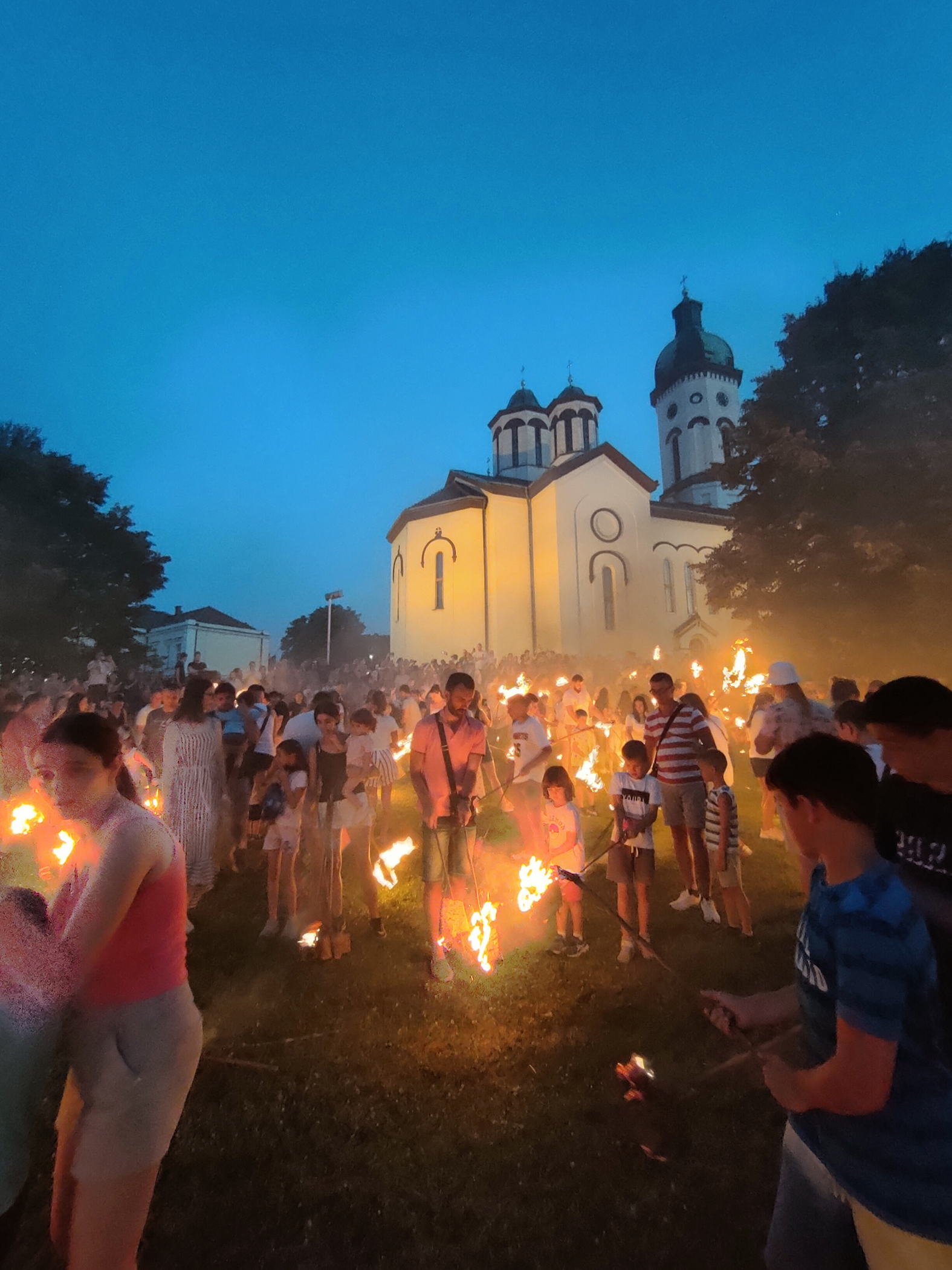 – Može – čulo se sa mikrofona. Kad kretoše junoše, kad se naguraše starije gospođe, kad se upali prva, pa druga, pa kad počeše da vrte u krug. Ne mrdam, ko sme i da mrdne, gde ćeš ako nećeš da se zapališ. Stojim u mestu, vrtim i ja u krug i sve mi se slike vraćaju. Moje selo, moja crkva, moja raskrsnica, moje petrovače iz mog dvorišta. Tada je to bilo malo, sada čitav svet radosti, tada nismo shvatali, sada znamo. Malo nam za sreću treba.