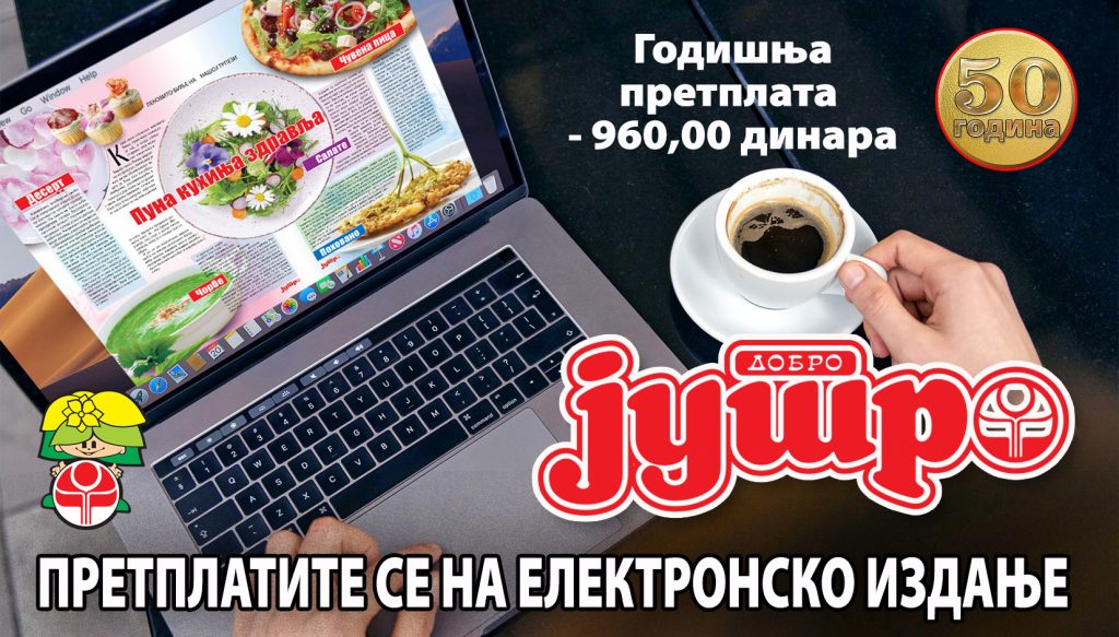 Poštovani čitaoci, povodom velikog jubileja – 50 godina našeg i vašeg magazina „Dobro jutro“, spremili smo za vas posebnu cenu pretplate na elektronsko izdanje. Za samo 960 dinara dobićete godišnju pretplatu na sve časopise, i aktuelne i one iz arhive, kao i sve tekstove, članke i reportaže na našem sajtu. Pišite nam na dobrojutro.redakcija@gmail.com ili nas zovite na +381 69 11 54 004