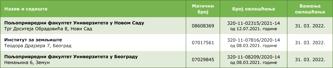Ovlašćene projektantske organizacije za izradu projekta pretvaranja neobradivog u obradivo poljoprivredno zemljište su: