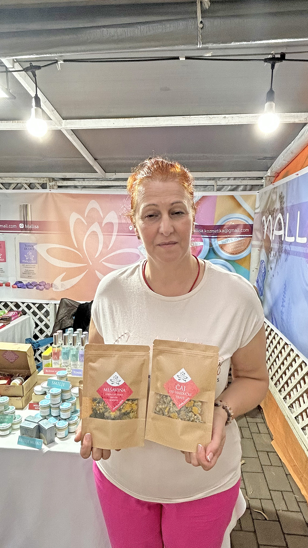 – Baza za proizvode je prirodni vosak, a pravimo sapune, kreme, tonike, serume, gelove, maske, dezodoranse, mleka. U našoj ponudi imamo i kremu od sladića za izbeljivanje tamnih fleka i staračkih pega, krema od kamilice za psorijazu i rozaceu, krema od smilja koja usporava starenje kože. Tu je i gel od ekstrakta zelenog čaja da se rešite tamnih kolutova, podočnjaka. Sapuni koji hrane kožu, odstranjuju mrtve ćelije, pomažu u smanjenju pojave akni. Tonici, prirodne biljne vode dobijene destilacijom cvetova ili biljaka, koji održavaju zdravlje kože. Serum sa uljem koštica šljive, kajsije i trešnje, koje sadrže prirodne masne kiseline i intenzivno hidriraju kožu – objašnjava Maja za Dobro jutro, koja se, kada je zdravlje u pitanju sa velikim poverenjem oslanja na čajeve od kojih izdvaja; hajdučku travu, ivu, rastavić, matičnjak, kantarion, vranilovku, nanu, bosiljak, rtanjski