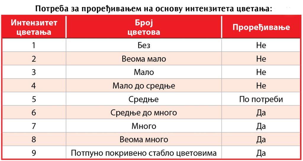 Naravno da se mora dobro proceniti kakve će temperature biti posle cvetanja da ne bi bilo izmrzavanja, ali i kakvi su uslovi za vreme oprašivanja i oplodnje. Da bi bilo što bolje oprašivanje i oplodnja, mora se na primer kod trešnje ubaciti najmanje 10 košnica po hektaru pčela i jedna košnica bumbara. Najbolje vreme proređivanja je kada je oko 60 odsto punog cvetanja. Valja ga uraditi najmanje dva puta do punog cvetanja. Od preparata najbolje je koristiti ATS u koncentraciji 1,5 do 2 odsto i Surfaktant Silvet L77 0,15 do 0,2 odsto. Zavisno od sorte, utvrđeno je povećanje recimo kod trešnje od 7,5 do 15,5 odsto, što je vrlo značajno.