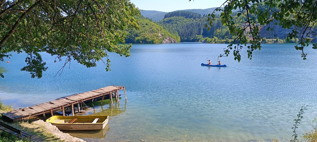 Ova prirodna lepota skrivena je od turista, pa ovde nema gužve. Najčešće ćete zateći lokalce ili tek ponekog namernika koji je čuo za ovo skriveno mesto. Na obali se čuje dečja graja, neko vesla kajak, a oni koji traže mir uživaju u ribolovu. Voda je bistra i prohladna, idealna za kupanje u vrelim letnjim danima, a pejzaž se iz časa u čas menja – od mirne površine ujutru, do razigranih talasića popodne, kada vetar malo zaigra preko jezera. Ne menja se samo površina, već i boja – od tirkizne do smaragdne, sve zavisi kako su okolna priroda i nebo raspoloženi toga dana.