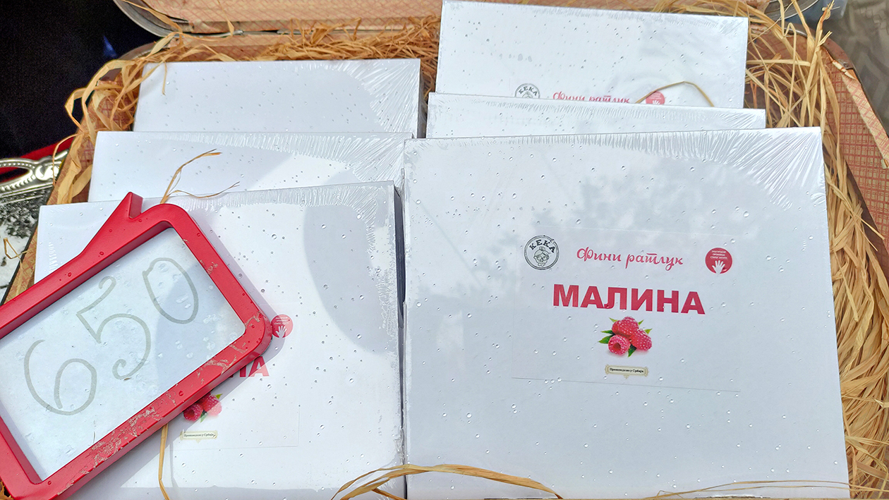 Keka ratluk je napravljen po recepturi iz 1936. Ratluk se kuva, ručno mesi i pravi i izliva u kalupe. Zašto smo došli do ideje da baš bude sa malinom? Zato što je malina srpski brend i koristimo malinu sorte vilamet direktno iz Arilja. Stavljamo liofilizovanu malinu. Proces liofilizacije ide tako što se malina smrzne na temperaturi od -50 do -60 stepeni, suši se, što znači da se izvlači vlaga vakuumom u komori. Kada je iz nje izvučena sva voda, ostaje suva materija koju mi stavljamo u ratluk.