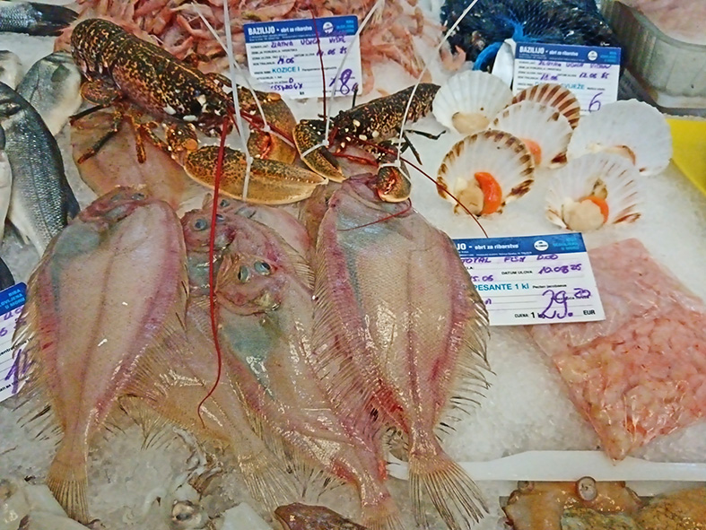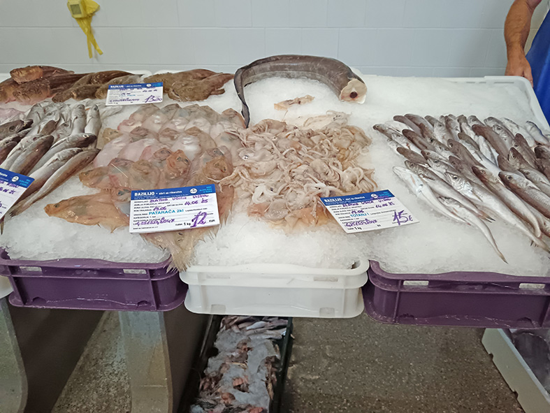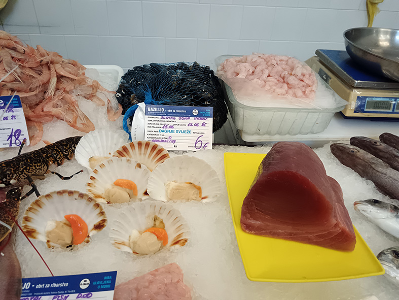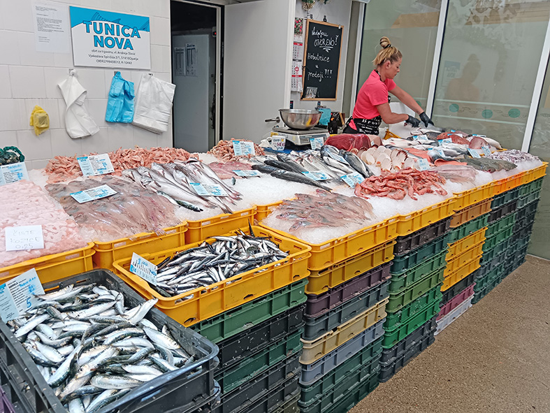 Osim bogate zelene pijace sa ponudama svežih poljoprivrednih proizvoda, mesa, jaja, raznovrsnog cveća i mešovite robe, najveći deo zauzima “riblja pijaca”. U njoj se svakodnevno mogu pazariti sveža jadranska riba i morski plodovi. I sami smo se uverili da se za svakoga može nešto pronaći i to po povoljnijim cenama nego, na primer, u beogradskim ribarnicama.