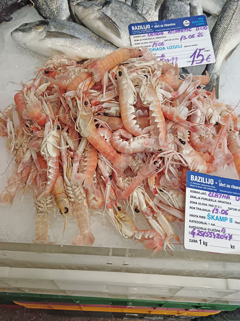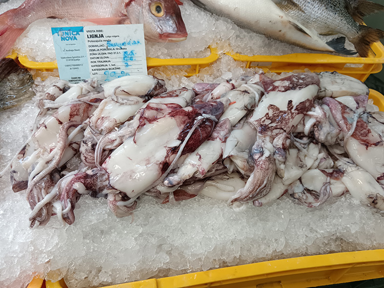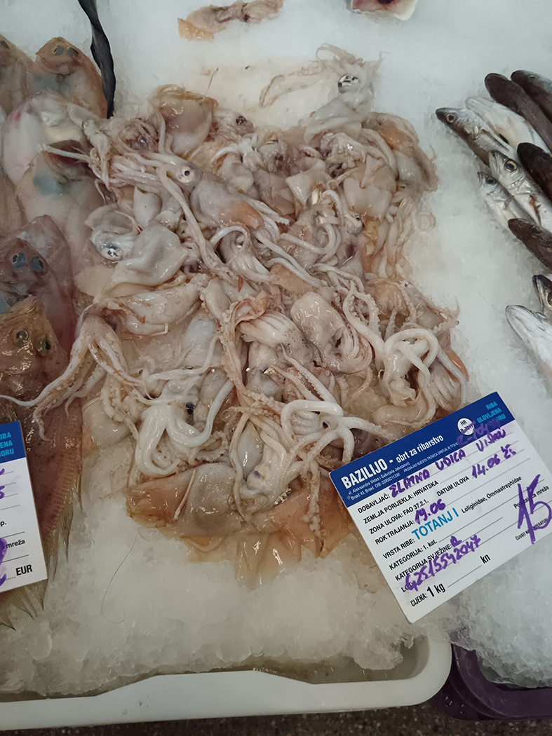 Za neke priznajemo nismo ni znali, dok smo pojedine imali priliku da vidimo samo na internetu. Bilo kako bilo, meštani već od rane zore strpljivo čekaju u redu da nabave sveže lignje, škarpine, brancine, rohboe, lososa, file grdobine, sabljarke, škampe, inćune, dagnje, osliće, kozice, sardele, patarače, hobotnice…