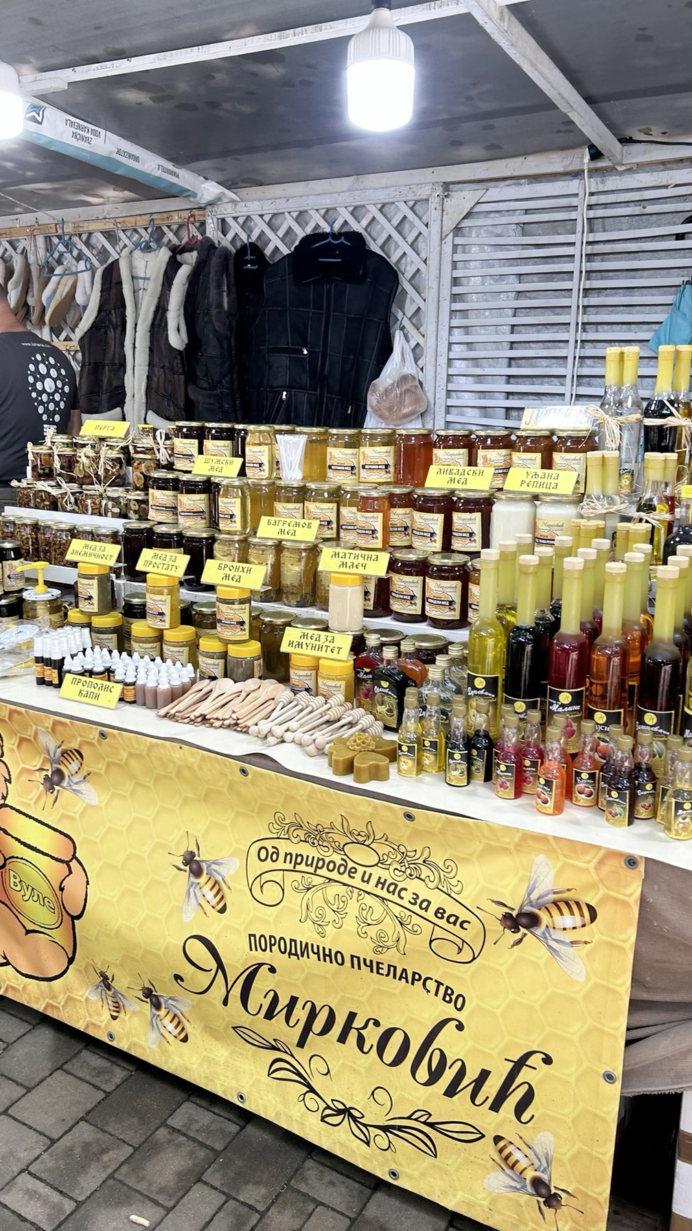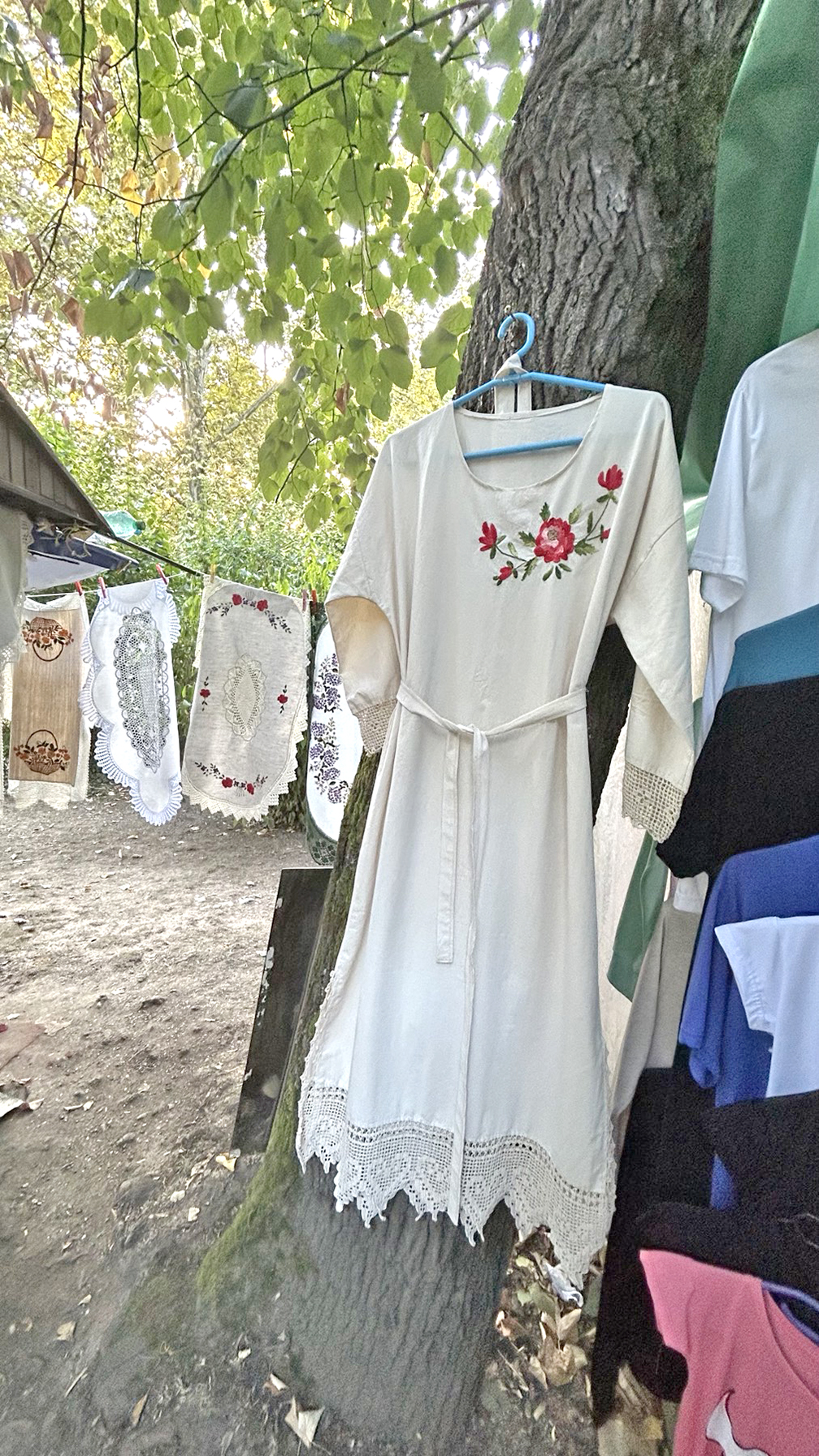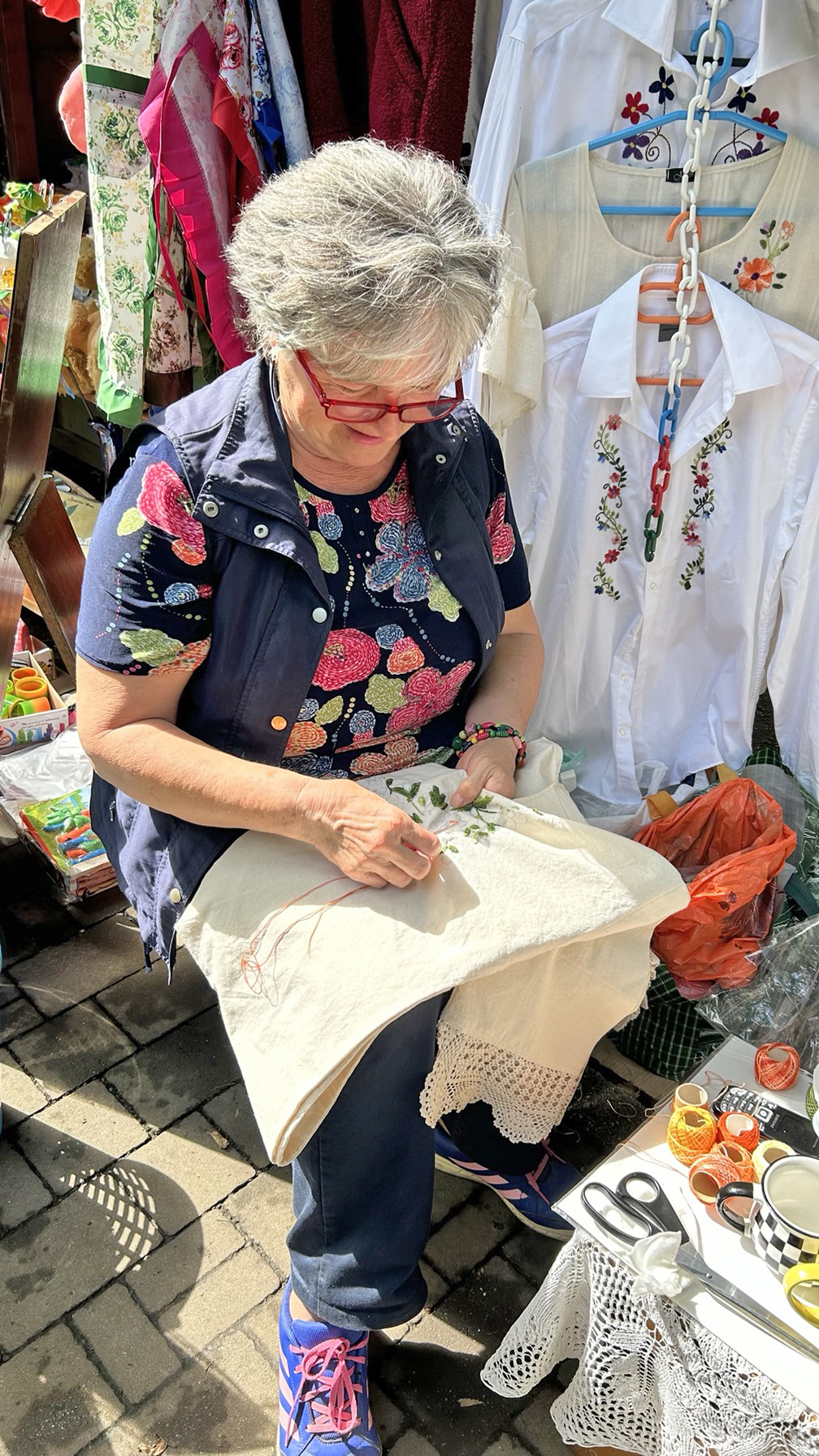 U Vrnjačkoj Banji se danas završava Sajam starih zanata, rukotvorina, meda i lekovitog bilja. Duž cele Promenade se protežu štandovi proizvođača iz cele Srbije. Od suhomesnatih proizvoda iz Vojvodine do kožnih prsluka iz Pirota. Na štandu sa ručno izrađenim haljinama, bluzama i miljeima zatekli smo gospođu Jelicu iz Trstenika kako veze cvetne detalje na haljini. Ovim poslom se bavi iz hobija, penzionerka je već 15 godina, a veze više od 20 godina. Koliko joj je vremena potrebno za rad na jednoj haljini zavisi od modela i želje kupca.