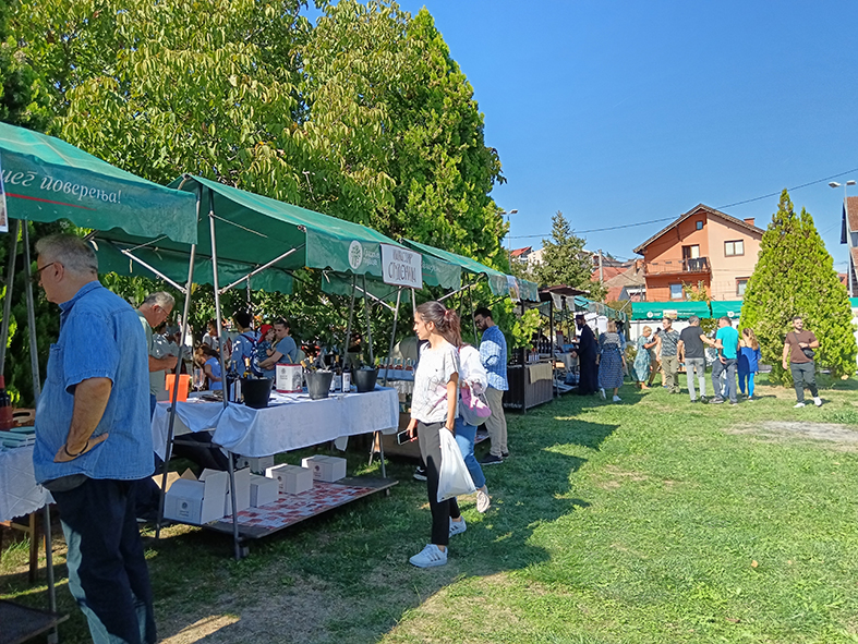 Na štandu manastira Lelić smo primetili proizvode meda i rakije, za koje je vladalo veliko interesovanje.
