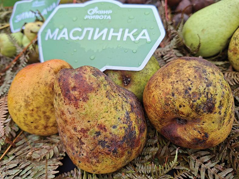 Maslinka je retka i mnogo stara sorta. Bere se početkom oktobra, kada odstoji i ugnjili onda se jede. Ima jako topivo meso i možda je najukusnija kruška koja postoji.